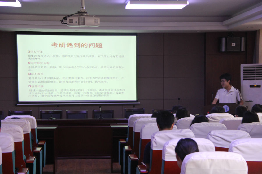 首先,黄一博学长就大四考研问题做了专业的讲解。其次,覃润楠学姐结合自身的保研经历向我们介绍了保研的前期准备,以及保研面试中需要注意的事项。然后,路康学长风趣幽默的介绍了支教活动的难忘记忆和收获,那句“用一年不长的时间,做一件终身难忘的事”深深地感染了我们。最后,马龙学长给我们讲述了找他工作的经历、面试的技巧以及简历的准备。学长学姐们真诚的讲解、中肯的建议与台下同学们的热情洋溢,专心致志交相辉映。整个活动达到了既定的目的,真正的帮助了有需要的同学。至此,本次活动完美落幕。