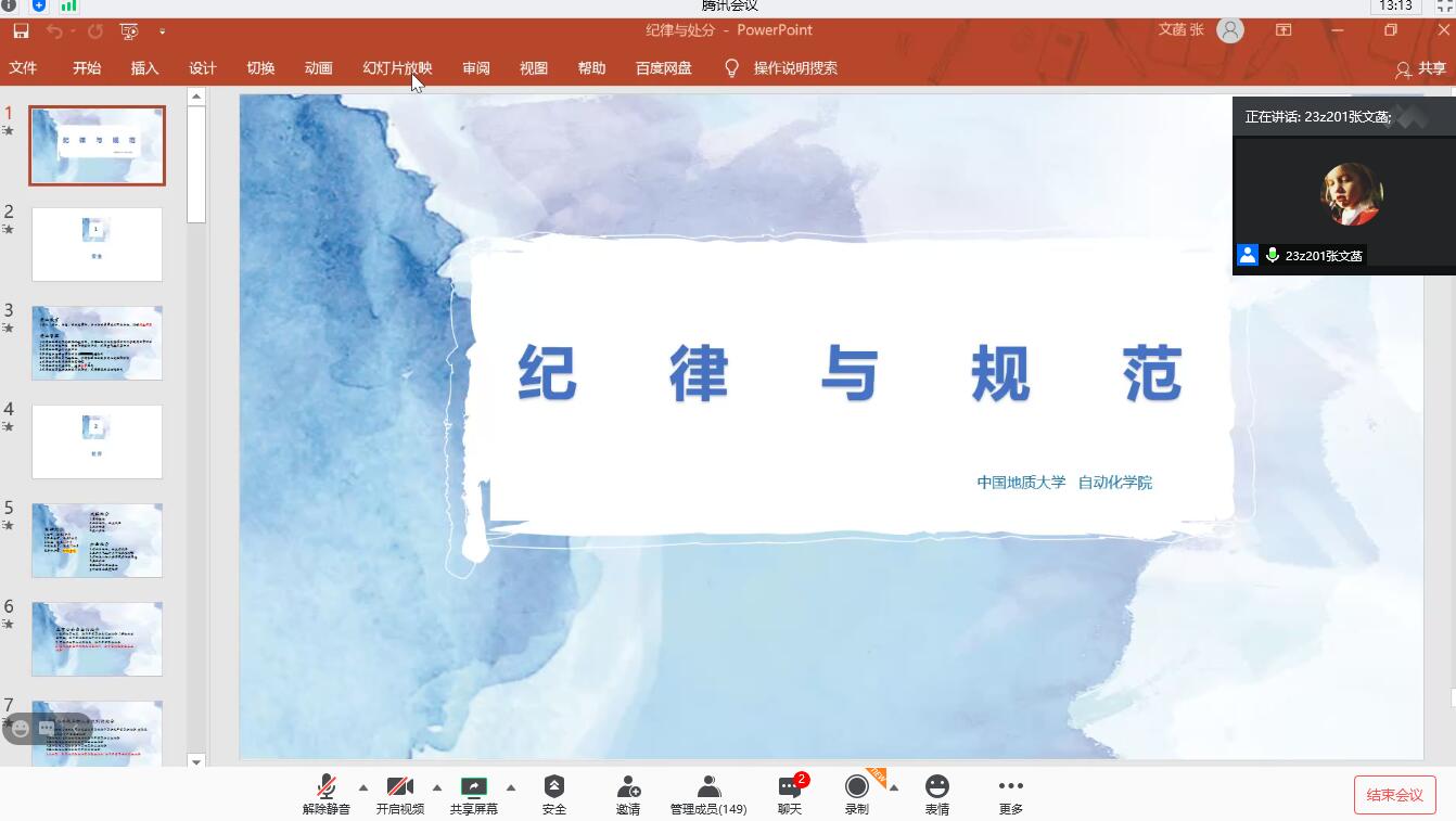 9月26日上午,2020级全体新生在信息楼集中观看大学的第一堂课。首先,黄晓玫书记带来《汇聚爱国强国的磅礴力量——新时代青年员工的使命担当》,带领大家回顾党史,讲述我国的英雄模范故事,号召广大学子学习他们的精神,随后向同学们介绍了在这场疫情面前,我国的制度优势充分体现,并向同学们讲述了地大人的担当与抗击疫情的一个个事迹,尤其是地大青年的表现,值得我们称赞与学习。随后,傅安洲教授向同学们讲述了高等教育史与公司校史,带领同学们了解地大的历史,更好的开展今后的学习,转变角色,努力学习,承担社会责任。