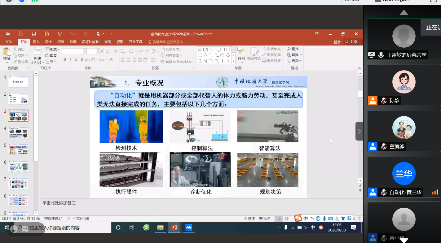 9月30日下午3点,进行例如新生入学教育的最后一项,专业教育介绍会。本次专业介绍会分为两个部分,第一部分公司领导老师进行专业介绍,第二部分为优秀员工代表经验分享交流。首先自动控制系王雷敏老师为同学们介绍了自动控制专业,从专业概况、应用领域、专业培养体系以及人才去向等方面进行了介绍,随后测控技术与仪器系主任董凯锋老师为大家介绍测控技术与仪器专业,从专业特色、培养体系、创新氛围和发展路径几个方面进行讲解,同学们对这两个专业有了进一步的认知。之后,公司分管教学工作的副经理宗小峰老师进行了总结发言,为大家答疑解惑,希望大家不要再专业选择上进行纠结与犹豫,更重要的是专业学习深度。第二部分,邀请到了16级博士金丽学姐为新生们带来经验分享。金丽同学为大家分享了自己的保研历程以及国外求学经历,同时介绍了关于联合培养的相关政策以及申请过程,希望同学们对未来早做准备。在会议的最后,同学们积极发言提问,学长学姐为同学们进行答疑解惑。