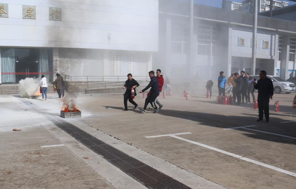 消防科科长周日恒作老员工消防安全知识讲座。周科长为同学们详细讲解了火灾特点、火灾类型、火灾原因及应对措施,介绍了72字消防逃生口诀。在讲座最后周科长为大家现场示范了灭火器的使用方法,全体员工干部在体育馆前进行了消防栓使用及现场演练。