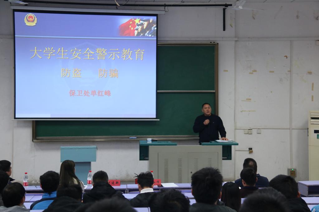 校保卫处副处长单红峰作“老员工安全警示教育——防盗、防骗”知识讲座。单处长指出,作为老员工,保管好财物是一项重要能力;通过对近年来发生在公司的典型案例来警示同学们防盗、防骗意识的重要性,对如何防盗、防骗的方法重点展开讲解。