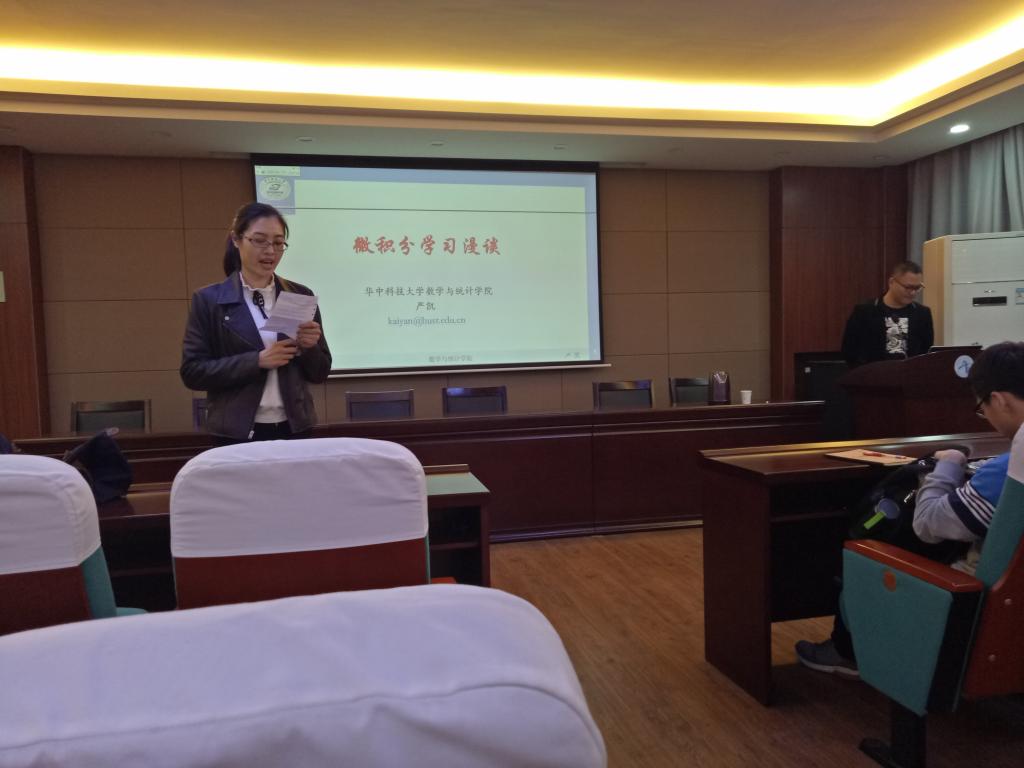 (通讯员 余博威)2018年4月15日晚,公司“微积分学习漫谈”讲座在信息楼310报告厅顺利举行,讲座邀请华中科技大学数学与统计公司严凯老师主讲,朱媛老师主持讲座。