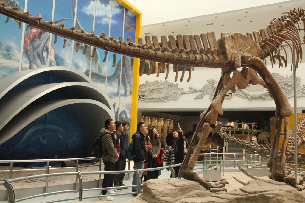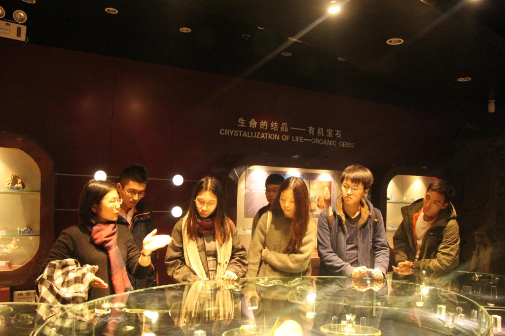 谭老师首先带领中山大学师生们参观了公司逸夫博物馆。在讲解员的热情讲解下,师生们对馆中的资料、化石以及珠宝藏品等十分赞叹,积极向讲解员提问交流,展现出了浓厚的兴趣,也体会到了公司师生艰苦朴素、求真务实的精神。