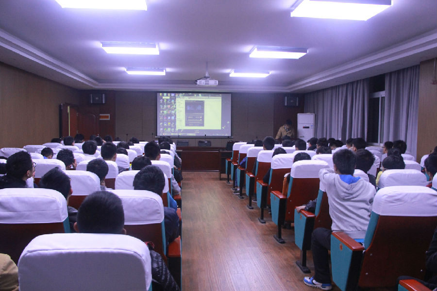 首先进行的是PPT演示,主讲人周浩以诙谐幽默的风格对培训内容进行了演示,让参赛同学在轻松的气氛中学到了很多东西。接下来,周浩同学为我们展示了他自己动手制作的小车,并进行了说明,使培训人员对比赛有一个直观的感受。紧接着是问题答疑环节,周浩同学对同学们的提问一一进行了解答。