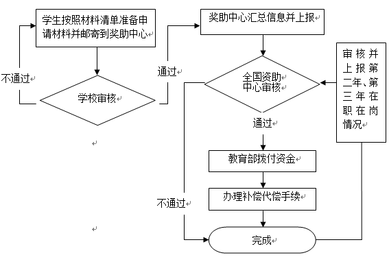 国家对到中西部地区和艰苦边远地区基层单位就业的获得学费和国家助学贷款代偿资格的高校毕业生采取分年度代偿的办法,员工毕业后第一年、第二年代偿学费或国家助学贷款总额的33%,第三年偿还34%,三年代偿完毕。获得代偿的同学在第二年和第三年的5月30日以前在代偿系统中填写当年在职在岗证明并向学工处老员工奖励与资助中心寄送当年在职在岗证明(附件7),不按时寄送将无法办理下一年的代偿手续。离职或工作单位有变动的毕业生在工作变动时应及时与资助中心联系,并寄送相关证明。