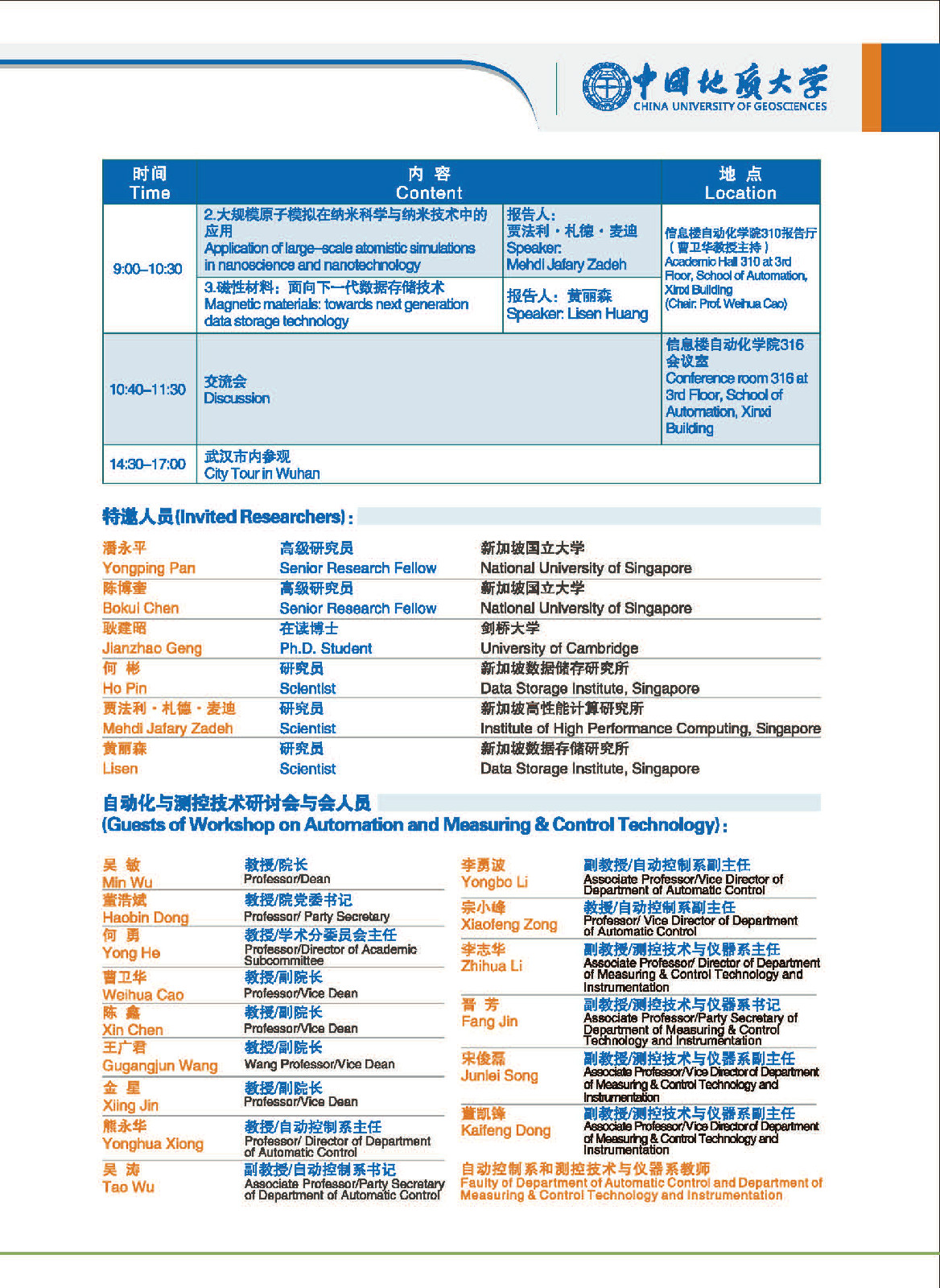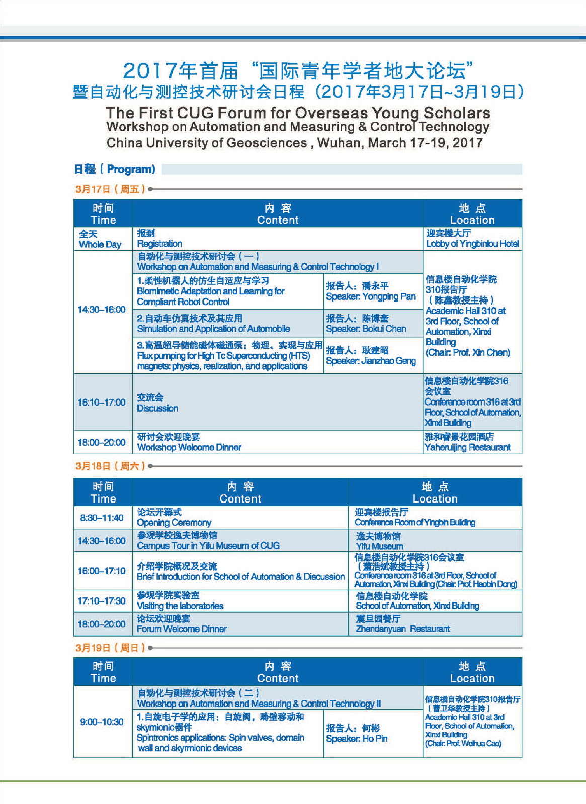 公司举办首届“国际青年学者地大论坛”旨在面向海外邀请不同学术背景的青年才俊,围绕国际科学前沿、热点研究领域开展学术研讨,互相启迪,开拓视野,增强国际交流与合作,引进海外优秀青年人才。为此,公司将召开自动化与测控技术研讨会,具体日程安排如下: