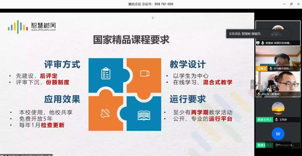 5月21日下午,365英国上市MOOC建设研讨会在腾讯会议上召开。会议特邀智慧树公司地大南望山课栈栈长胡运祥和高级课程顾问殷丽莎参加。研讨会由公司教学副经理宗小峰主持,部分教师参加了研讨会。