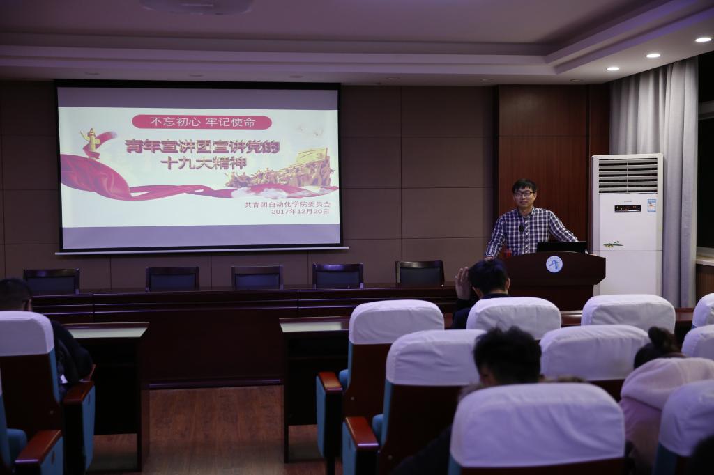 本次宣讲会由谭文伦老师主持,他首先从自己学习十九大精神的经历开篇,向同学们深刻阐述了学习十九大精神的深刻体会。