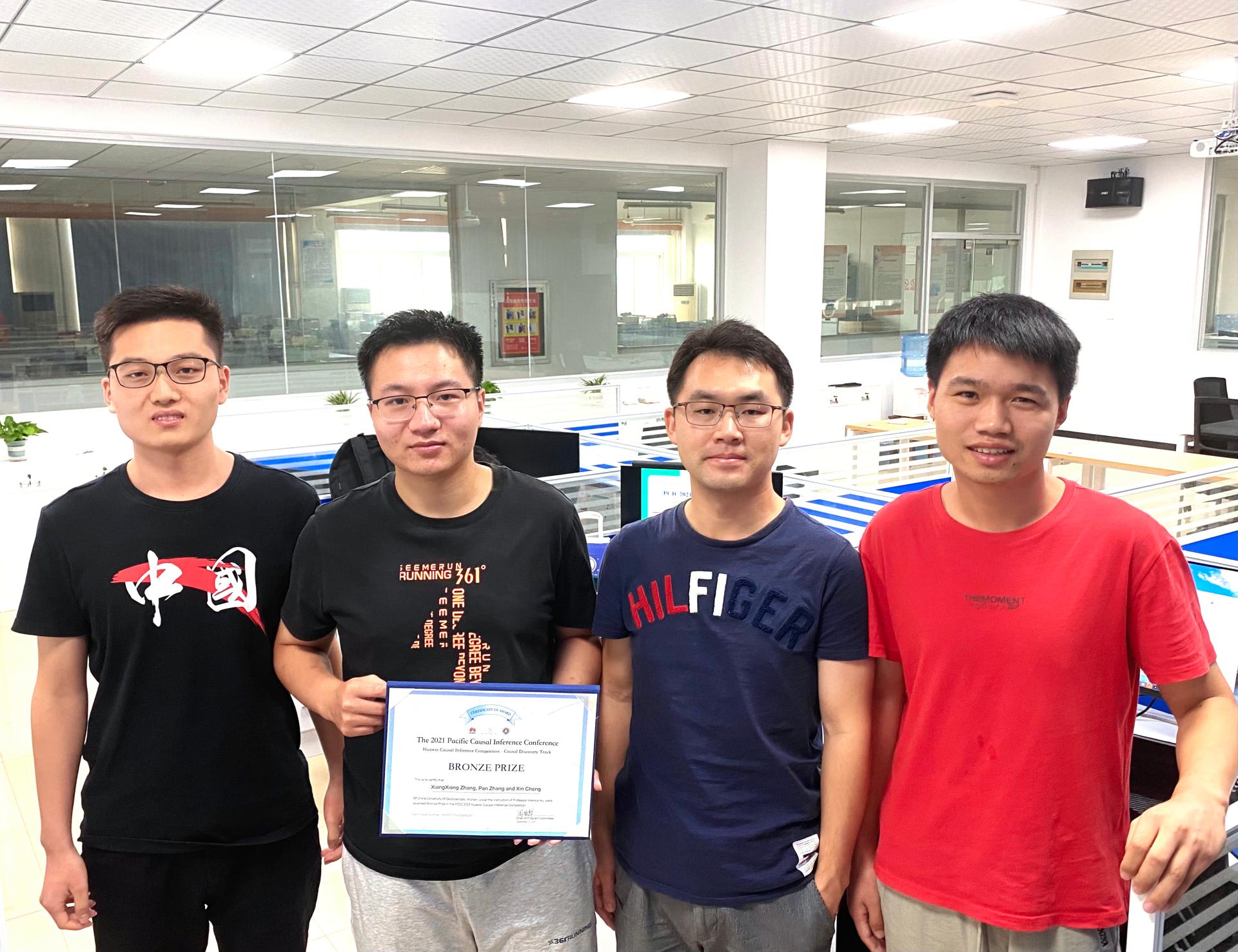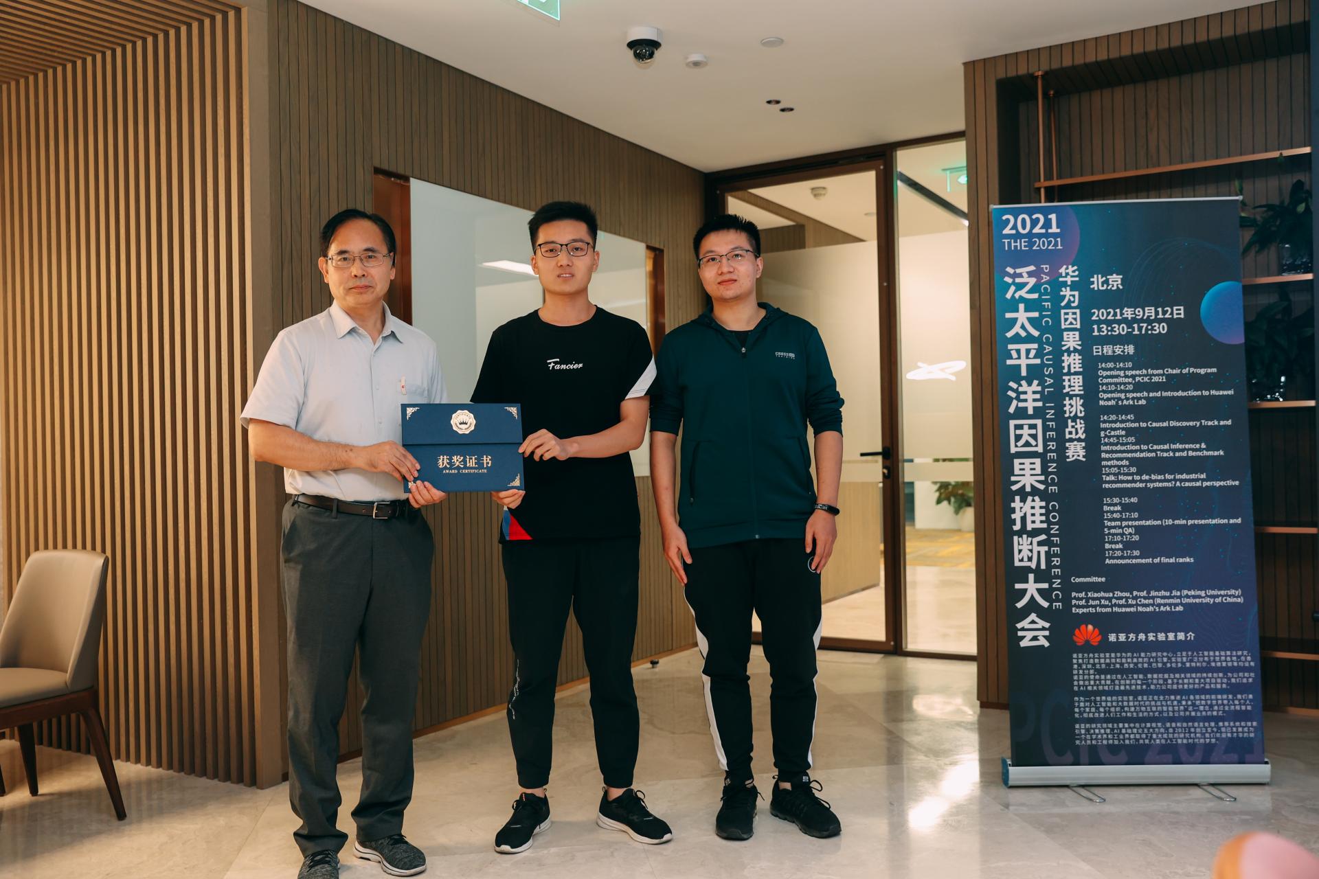 2021年暑期,由北京大学联合华为诺亚方舟实验室共同举办了PCIC 2021华为因果推理挑战赛“PCIC 2021: Causal Discovery”。公司研究生张祥祥、章攀和程鑫组队参加了该竞赛,指导老师为胡文凯教授,经过初赛和复赛两轮激烈的竞争,最终获得该挑战赛铜奖。