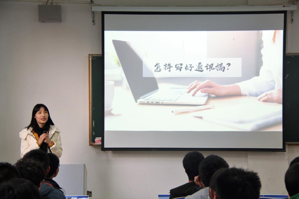 王培培老师首先介绍了通讯稿与推文的区别、通讯稿的种类以及通讯稿的内容结构。其次,以日常工作中的通讯稿为例,分析优秀的讯通稿,并现场互动与同学们一起修改通讯稿,详细地讲解了通讯稿的撰写要求。她还规范了公司团学各部门通讯稿的书写格式,举例说明了不同类型的通讯稿照片的拍摄方法以及通讯稿的时效性,让新生干部们对“如何写好通讯稿”有了更深刻的认识。
