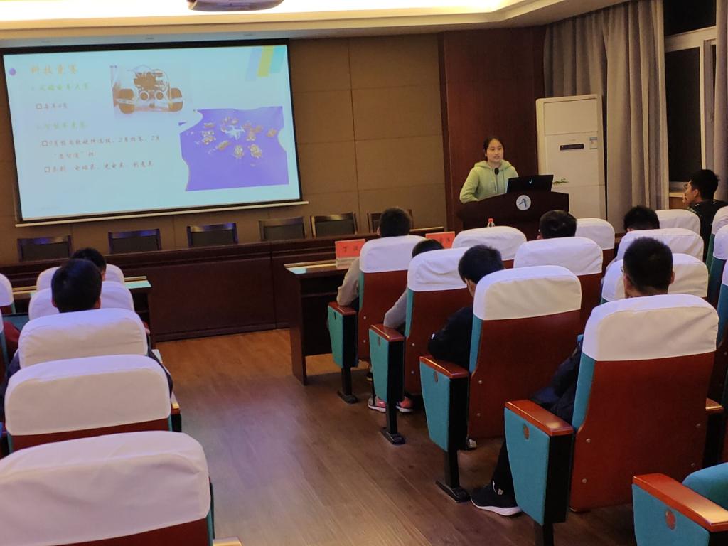 主持人贾玉同学对学长学姐的经历做了介绍。接下来,学长学姐对自己的科创经历进行了分享,并放映了精心准备的PPT和视频。学长学姐向同学们详细介绍了各级、各类的科创比赛,还介绍了科创方面的知识,让大家获益匪浅。
