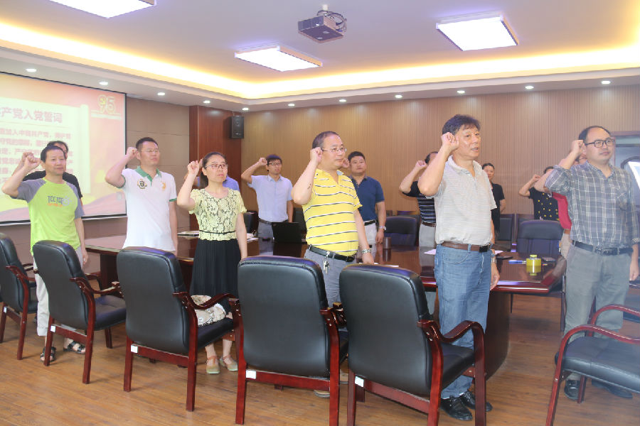 院直中心党支部全体党员,面对党旗,庄严的重温入党誓词,并学习了习近平总书记纪念建党95周年的重要讲话精神,大家积极讨论并发言,认为习近平总书记的讲话具有现实性,令人鼓舞,能促进每位普通党员在本职工作岗位上发挥模范、带头作用,也体现了中国人的硬气和骨气,同时,结合“两学一做”学习教育,提升了大家的社会责任感和岗位责任感。