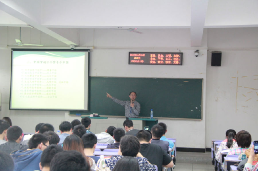 (通讯员 梁丙鋆)2015年4月24日下午四点,公司党课第八讲在教三楼506教室举行。本次党课由公司党委书记董浩斌教授主讲,其授课主题为“伟大的理想,崇高的目标——中国梦”。