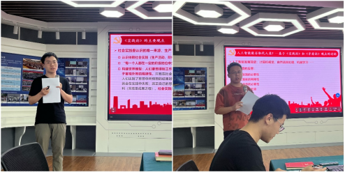 本次集中学习中,毕乐宇同志首先围绕《实践论》创作的时代背景,结合自动化专业特色,介绍了《实践论》的主要观点及其重要作用,并分享了自身学习体会,即要意识到个人的认识存在适用范围和边界,一定要不畏惧新的事物和失败,事实求是、勇于探索实践,积极突破自我的边界;刘乾同志则基于《实践论》观点开展人工智能能否取代人类的讨论,他从哲学的角度分析了目前人工智能的局限性,强调认识实践的必要性,并指出人机合作的大势所趋及人工智能对社会发展的推动作用。